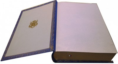 Оформление: кожаный футляр, обтянутый синим бархатом, цельнокожаный переплет ручной работы с золотым и серебряным тиснением. Издание на мелованной бумаге. Современное издание. Малый тираж.