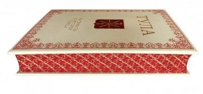 В цельнокожаном переплете ручной работы с тиснением золотом. Дизайнерские форзацы и обрезы.