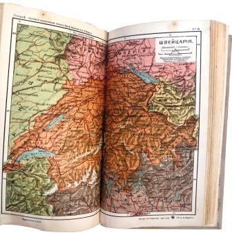 В атласе опубликованы 64 цветные географические карты и сравнительные географо-статистические таблицы (диаграммы) с их кратким объяснением. Особый интерес представляют диаграммы, дающие широкое представление об историческом пространстве начала XX века: сравнительная величина всех государств на земном шаре по занимаемой ими поверхности в квадратных километрах; сравнительная величина государств на земном шаре по числу населения; сравнительная величина крупнейших городов на земном шаре по числу жителей; сравнительная численность народов Европы, естественный прирост населения Европы, относительные числа рождений, смертей и естественного прироста; военные силы государств, с включением флота, в мирное и военное время, сколько стоит вооруженный мир ежегодно?