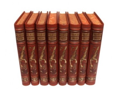 Каждый том в цельнокожаном переплете ручной работы с тиснением золотом