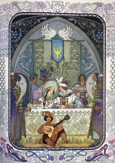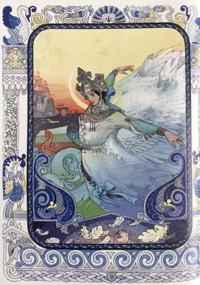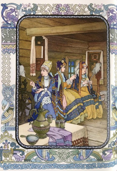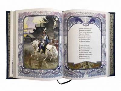 Цель эту помогают постичь иллюстрации Вячеслава Назарука в сказочном "русском стиле" — многослойные, сложные по колориту и орнаментальности. Обращаясь не только к фольклору, но и к традициям отечественной иллюстрации, художник создал рисунки к семи произведениям Пушкина: самым известным сказкам поэта, сказке-балладе "Жених" и незаконченному произведению "Сказка о медведихе".
