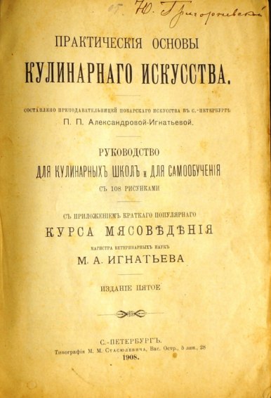 руководство по поварскому искусству, но и памятник дореволюционной