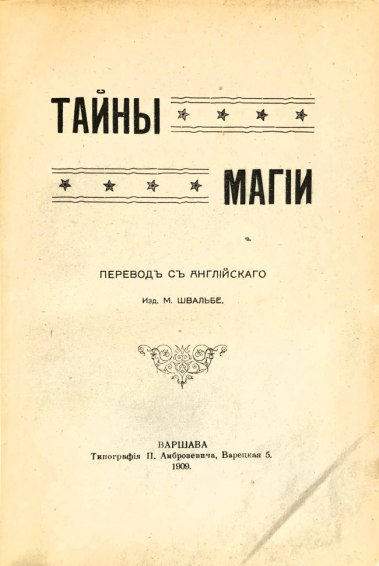 Отдельная глава книги посвящена сценической магии, в конце издания автор дает практические советы по исполнению фокусов и устройству магических представлений. Издание вышло без указания автора. Однако в каталогах РНБ ее автором называется сам Альфонс-Луи Констан (1810-1875) — знаменитый французский оккультист и каббалист, известный также под «магическим» псевдонимом Элифаса Леви. В отличном состоянии.