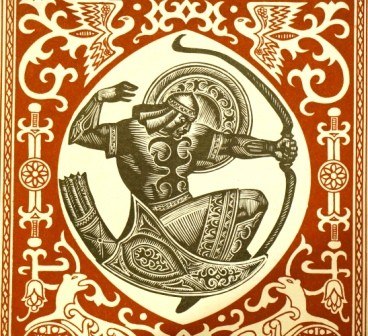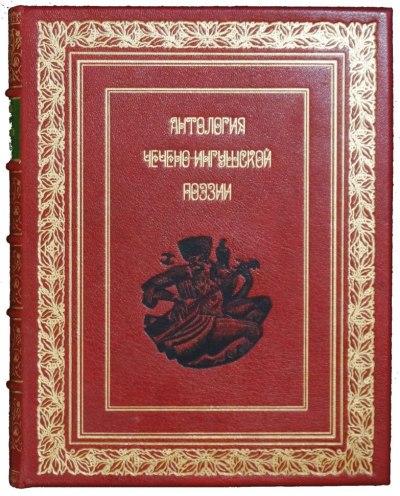 В красном цельнокожаном переплете ручной работы с сюжетной композицией на передней крышке.