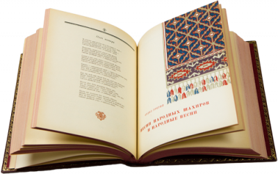 Настоящее издание представляет собой собрание образцов туркменской поэзии за многовековой период ее развития. Задача антологии — дать возможность русскому читателю познакомиться с богатством поэтической культуры туркменского народа — с его фольклором и письменной поэзией. Над созданием этого труда работал большой круг литераторов и научных сотрудников. При составлении антологии редакции пришлось проделать огромную работу, так как многие собранные тексты прошлых веков не были очищены от поздних напластований, нередко искажающих суть. Некоторые искажения возникали как результат влияния исламской культуры. Отдельный раздел антологии посвящен песням народных шахиров, исполняющих свои произведения под музыкальный аккомпанемент. В коричневом цельнокожаном переплете ручной работы с тиснением золотом и иллюстрацией на передней крышке. Коричневый тонированный обрез. Коричневое тонкое шелковое ляссе