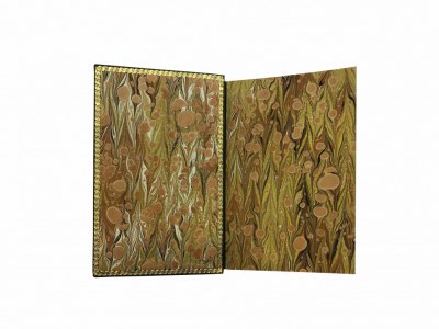 Книга в цельнокожаном переплете ручной работы с тиснением золотом.