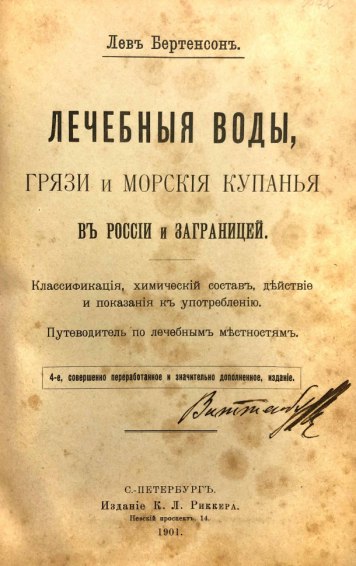 Лев Бернардович Бертенсон (1850-1929) — врач-бальнеолог, доктор медицины, профессор. Лейб-медик, член императорского Медицинского совета и различных ученых обществ России. Написал много научных работ.