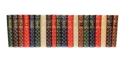 Каждый том в цельнокожаном переплете ручной работы с тиснением золотом.
