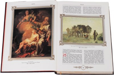 Уникальное издание, включающее в себя полное собрание работ русских художников ХVIII – XIX в. на темы Священного Писания. Издатели книги проделали колоссальную работу по выявлению и включению в настоящее издание редких и малодоступных широкому зрителю живописных и графических изображений. Среди художников, творчество которых нашло отражение в "Библии", такие выдающиеся имена, как В. Боровиковский, Ф. Бруни, К. Брюллов, А. Иванов, В. Поленов, Н. Ге, В. Врубель, В. Васнецов, а также менее известные – А. Лосенко, Н. Чернецов, А. Агин, А. Рябушкин и другие.