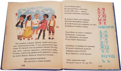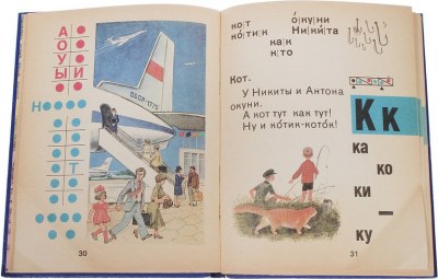 В Букваре использованы тексты из русской и советской литературы. Художники: И. Бруни, О. Верейский, Ю. Копейко, В. Лосев, М. Митурич, Е. Монин, В. Перцев, Н. Устинов, Е. Викторов, В. Овчининский, И. Пчелко, П. Щербаков, Б. Рытман.