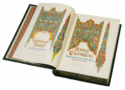 «Давид Сасунский» — легендарный средневековый армянский эпос, повествующий о борьбе богатырей из Сасуна (область в исторической Армении, ныне в Турции) против арабских захватчиков. Сложился в VII–X (не позднее XIII) веках. Эпос состоит из четырех ветвей. Первая — Санасар и Багдасар, вторая — Мгер Старший, третья — Давид, четвертая — Мгер Младший. Впервые эпос был записан в 1873 году известным исследователем народной словесности Гарегином Срвантдзтянцем из уст крестьянина по имени Крпо, жившего в селе Арнист. В настоящее время имеется академическое издание пятидесяти вариантов эпоса, записанных в различных районах Армении. Вместе с тем сосуществование различных вариантов эпоса не позволяет говорить о едином в деталях сюжете. Выделение наиболее характерных сюжетных линий позволило исследователям эпоса составить сводный вариант. Над его составлением работали известные армянские фольклористы. Сводный вариант эпоса был издан в 1939 году.Известный российский востоковед, академик Иосиф Орбели писал: «Эпос «Давид Сасунский» подлинно велик в ряду других эпических сказаний создавшего его народа. Это — подлинно армянский народный эпос. Эпос называется народным не только потому, что он живет в народных толщах и ими сказывается, он народен прежде всего потому, что все мировоззрение его героев неразрывно связано с подлинно народными низами, что все его герои неразрывно связаны с народом, a не с теми, кто тысячелетия держал в своих руках судьбы армянского народа». Представленное издание вышло под общей редакцией и с предисловием академика И.А. Орбели. Над переводом работали: В.В. Державин, А.С. Кочетков, К.А. Липскеров и С.В. Шербинский. Книга иллюстрирована известным армянским художником, графиком и гравером Ашотом Мамаджаняном. Форзац, титульные листы, шмуцтитулы, заставки и концовки — художника Тарагроса. В зеленом цельнокожаном переплете ручной работы с тиснением золотом. «Мраморный» обрез. Зеленое тонкое шелковое ляссе