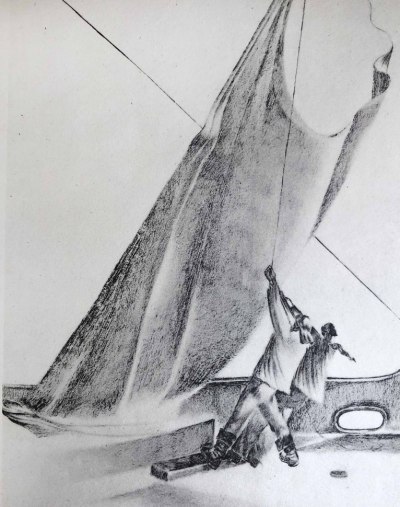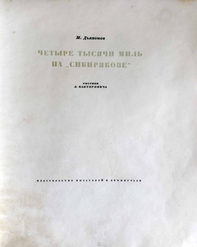 Канторович Лев Владимирович (1911−1941) − русский советский писатель и сценарист, известный и как театральный художник. В книге описано и проиллюстрировано историческое плавание корабля «Сибиряков» летом 1932 г. от Архангельска до Петропавловска-на-Камчатке. Рассказ о «Сибирякове» построен только на 36 рисунках, в которых художник хотел отразить самые значительные моменты плавания.