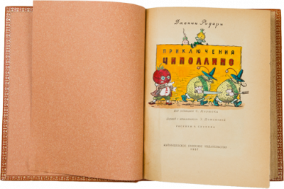 Издание знаменитой повести-сказки итальянского писателя Джанни Родари (1920-1980). Свое произведение «Приключения Чиполлино» Родари впервые опубликовал в 1951 г. Русский перевод этой повести увидел свет в 1953 г. Образ Чиполлино получил большую популярность в СССР. В журнале «Веселые картинки» он стал членом Клуба веселых человечков, состоявшего из известных персонажей детских книг и фильмов. В 1970 г. писатель получил престижную премию Ганса Христиана Андерсена, которая помогла ему приобрести всемирную известность. Произведения Джанни Родари дошли до русского читателя в переводах Самуила Яковлевича Маршака (1887-1964). Иллюстрации к книге о Чиполлино исполнил Владимир Григорьевич Сутеев (1903-1993) — художник и режиссер, один из зачинателей советской мультипликации. С 1923 г. он иллюстрировал книги для детей, среди его самых известных работ и рисунки к бессмертному произведению Д. Родари «Приключения Чиполлино».