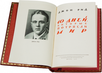 «Десять дней, которые потрясли мир» — книга известного американского журналиста Джо-на Рида, посвящена Октябрьской революции 1917 года в России. Описывая русскую революцию, автор находился в командировке в России от социалистического журнала The Masses. Как написал сам Рид во вступлении к своему изданию, «эта книга — это сгусток истории, истории в том виде, в каком я наблюдал ее». Как утверждал Рид, описывая революцию, он «пытался смотреть на события с точки зрения добросовестного журналиста, заинтересованного в установлении истины». В книге необычайно ярко и сильно описаны первые дни Октябрьской революции. Это — не просто перечень фактов, сборник документов, это — ряд живых сцен, картинки, выхваченные из жизни, как нельзя лучше передающие настроение людей, на фоне которых становится особенно понятен каждый акт русской революции.В красном цельнокожаном переплете ручной работы с тиснением золотом и иллюстрацией Д. Чехонина на передней крышке. Красный тонированный обрез. Красное тонкое шелковое ляссе.