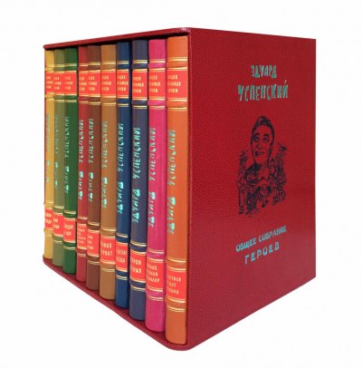 В первый том десятитомного собрания сочинений вошли новая фантастическая повесть Эдуарда Успенского "Подводные береты" и рассказы о природе. Во второй том вошли произведения, не публиковавшиеся прежде: "Письма ребенку" и "Юности честное зерцало" и "Школа клоунов". В третий том вошли широкоизвестные по детским мультфильмам повести — "Дядя Фёдор, пёс и кот" и "Гарантийные человечки", а также пересказ, сделанный Успенским, увлекательной повести финского писателя Ханну Мякеля "Господин Ау". Четвертый том посвящен самым популярным его героям — крокодилу Гене и Чебурашке. В пятом томе напечатана повесть "25 профессий Маши Филипенко" мало известна читателю, она издавалась всего один раз. А "Клоун Иван Бултых" издается впервые. В шестой том вошол сборник из двух внецикловых повестей "Вниз по волшебной реке" и "Меховой интернат". Седьмой том составили веселые стихи про все на свете. В восьмой том вошли повести, разнообразные по тематике и содержанию — "Пластмассовый дедушка", "Лекции профессора Чайникова", пьеса-повесть "Остров ученых". В девятый том вошли все детективные истории про доблестных криминалистов Колобков. Последний том содержит повесть "Красная Рука, Черная Простыня, Зеленые Пальцы" и "Жуткий детский фольклор" — собрание кошмарных историй.