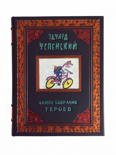 Книги в цельнокожаных переплетах ручной работы с золотым тиснениеми и иллюстрациями на передних крышках. Дизайнерские форзацы и футляр.