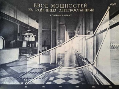 Редкое юбилейное отраслевое издание. Альбом издан к 50-летию Октябрьской революции. Над созданием альбома работал коллектив сотрудников Сектора научно-технической информации Всесоюзного института по проектированию организации энергетического строительства «Оргэнергострой», созданным в 1955 году. Издание прекрасно иллюстрировано, содержит большое количество фотографий из архива Института, а также из фотоархивов ТАСС и АПН СССР. Художник издания – К.Н. Никохристо.