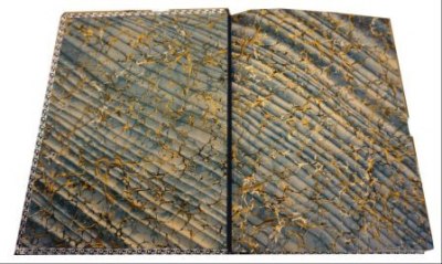 В цельнокожаном переплете ручной работы с золотым и серебряным тиснением.