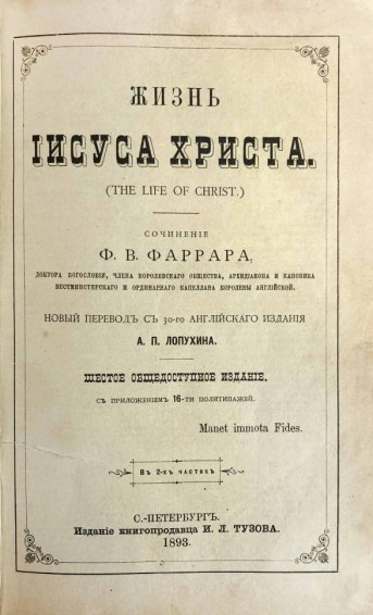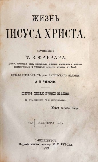 Издание известного и наиболее популярного сочинения английского религиозного писателя, доктора богословия, члена Королевского общества, автора трудов по истории христианства, одного из лучших духовных ораторов своего времени Фредерика Вильяма Фаррара (1831-1903).