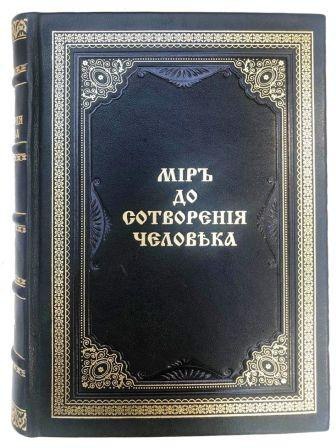 В черном цельнокожаном переплете ручной работы с золотым и блинтовым тиснением.