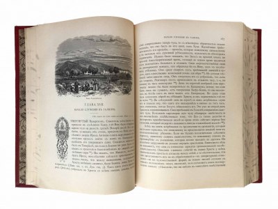 Книга в цельнокожаном переплете ручной работы с тиснением золотом на передней крышке и корешке. С прилож. карты Палестины и более 300 политипажей.