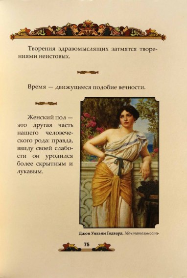 Издание представляет собой сборник цитат философов и мыслителей древнего мира. Для каждой культуры временные границы древности были разными, но всюду это была великая эпоха пробуждения человеческой мысли, и во многом именно на мыслях древних основывается вся остальная философия.