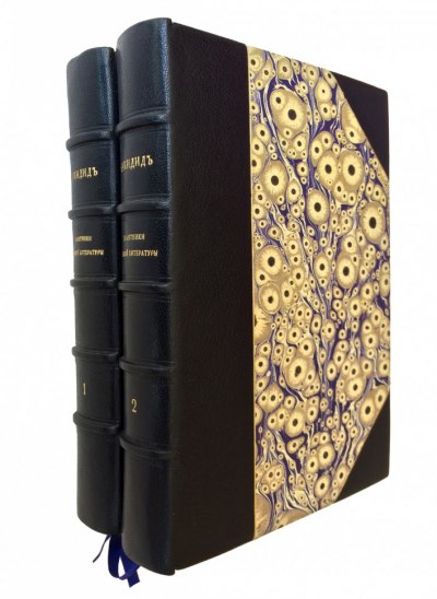 В двух современных полукожаных переплетах с золотым тиснением и бинтами по корешкам. Ляссе. С оригинальными сложенными картами.