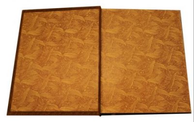 В цельнокожаном переплете ручной работы с тиснением золотом.