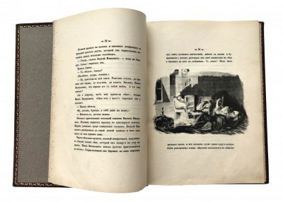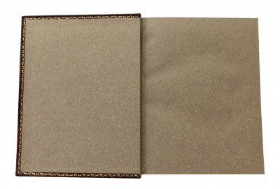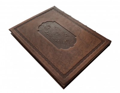 В цельнокожаном переплете ручной работы с тиснением золотом.