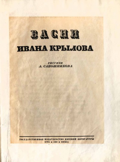 Художник Андрей Петрович Сапожников создал гравюры к басням еще при жизни Крылова, в 1834 году, некоторые экземпляры были раскрашены вручную (также воспроизведены в данном издании, вышедшем спустя 101 год после публикации оригинальных гравюр). По мнению Н. П. Смирнова-Сокольского, "гравюры А. П. Сапожникова — едва ли не самые лучшие русские иллюстрации к басням Крылова".