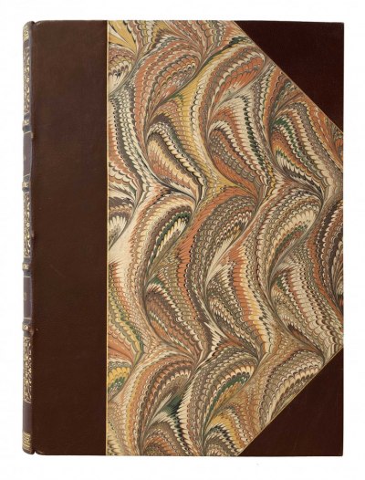 Книга в полукожаном переплете с тиснением золотом.