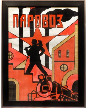 Плакат картина СССР "Паровоз"