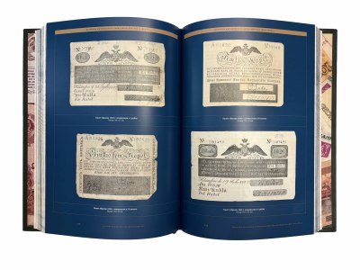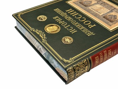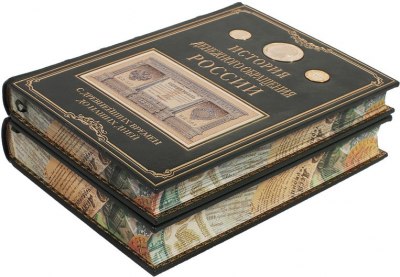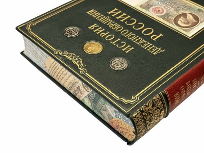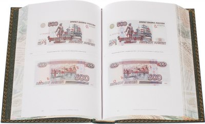 Представленное подарочное издание уникально своим оформлением. На обложках размещены оригинальные банкноты. 2 тома в кожаных переплетах ручной работы с тиснением золотом- эксклюзивный подарок как для представителей банковской сферы, так и для собирателей бумажных денежных знаков России.