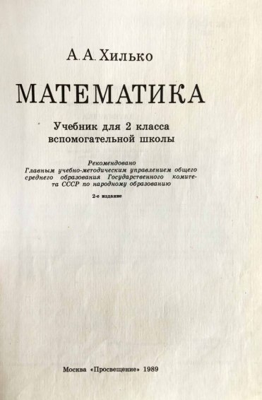 Учебник математики для 2 класса вспомогательной школы советской эпохи. Рекомендован к изданию Главным управлением школ Министерства просвещения СССР.