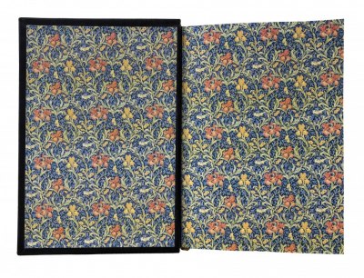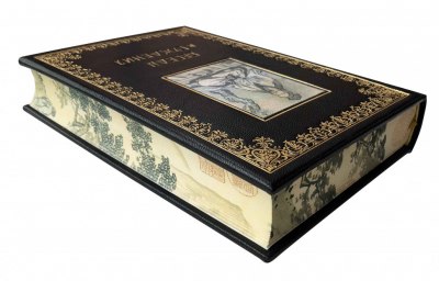 В цельнокожаном переплете ручной работы с золотым и цветным тиснением и иллюстрацией на передней крышке. Красивый, стилизованный обрез. Цветные форзацы.