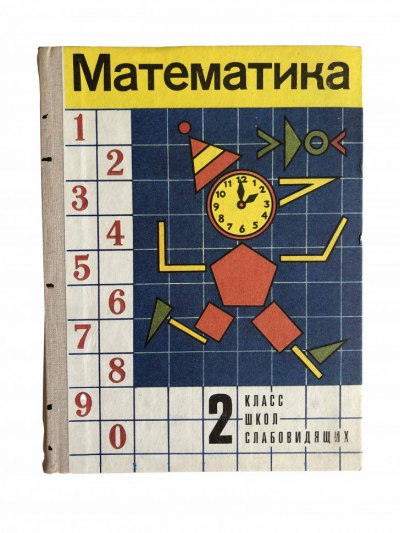 Учебник математики для второго класса школы слабовидящих советской эпохи. Утверждено Министерством образования Россиискои Федерации. В этом учебнике для школы слабовидящих изменены шрифты и иллюстрации.