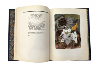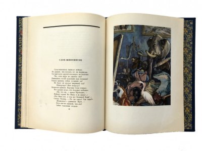 В цельнокожаном переплете ручной работы с тиснением золотом.
