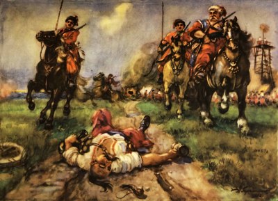 «Тарас Бульба» — самое яркое произведение Н.В. Гоголя (1809 –1852), освещающее героическую эпоху казачьей вольницы, «с ее удалью, разгульною жизнью, беспечностью и ленью, его буйными оргиями и кровавыми набегами». Обретение прошлого достигается у Гоголя не скрупулезным показом исторической хроники, не археологической тщательностью деталей, а обобщением событий, романтической наполненностью образов, когда драматические судьбы героев приобретают эпический размах. Текст сопровождается иллюстрациями Александра Михайловича Герасимова (1881–1963), живописца, теоретика искусства, педагога, первого президента Академии художеств СССР. Черно-белые иллюстрации передают динамику сюжета, а цветные иллюстрации на отдельных листах передают неповторимый колорит украинской природы, быта вольных казачьих поселений, Запорожской Сечи.
