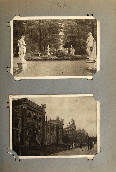 Альбом для фотографий и открыток включает 36 листов с прорезями для углов открыток.