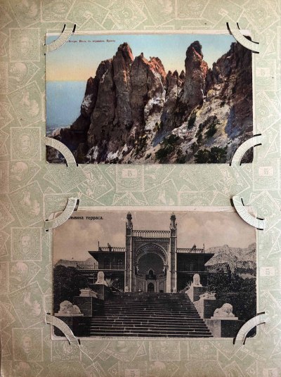Коллекция старинных антикварных открыток с видами Крыма. Этот альбом с открытками поможет дополнить вашу коллекцию или только начать собирать раритеты. Примеры открыток: Южная бухта и Графская пристань в Севастополе, Отход парохода в Ялте, общий вид Симеиза, Бахчисарайский дворец, вид с вершины Ай-Петри и многие другие открытки с видами природных ландшафтов и разных городов. Старые открытки несут на себе свой собственный отпечаток эпохи. И являются прекрасным материалом для коллекции.