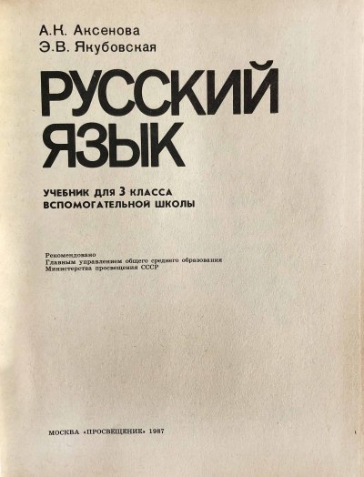 Русский язык — учебное пособие для третьего класса вспомогательной школы. Основная цель учебника — подготовить учащихся 3 класса к усвоению элементарного курса грамматики и правописания. В книге изучаются темы: Предложение, Звуки и буквы, Слово, Предлоги и Предложение.
