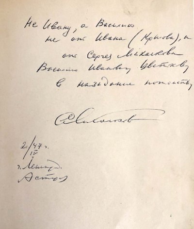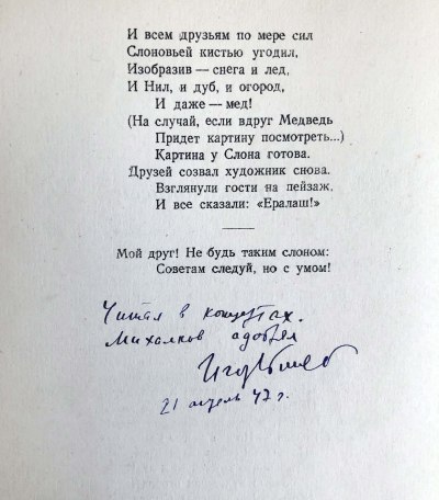 В издательском переплете. На переднем форзаце автограф С. Михалкова.