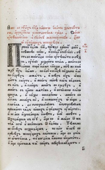 Эта книга напечатана в Почаевской типографии с книги 1647 года, напечатанной в Москве. Это переводной сборник уставных чтений, состоящий из избранных слов, бесед и поучений свт. Иоанна Златоуста.