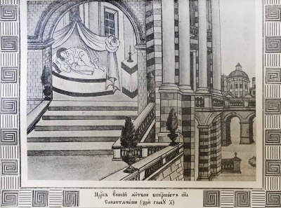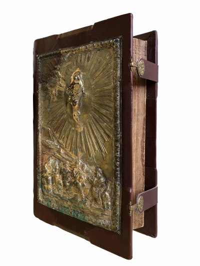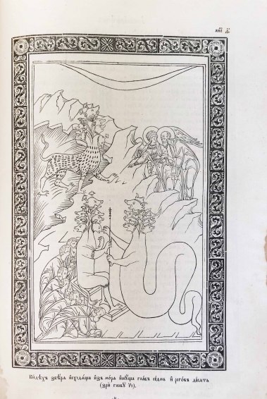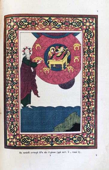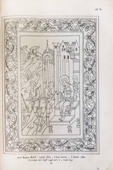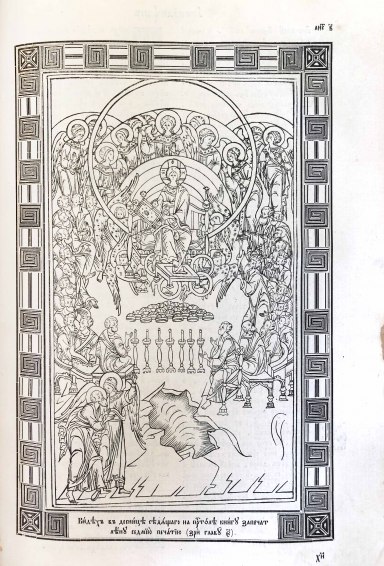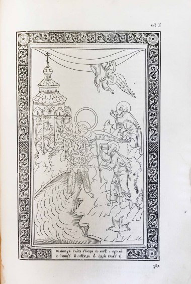 Доски обтянуты ледерином, сохранены металлическая накладка со сценой вознесения Иисуса Христа и металлические застежки. Обрез с узорным тиснением. 47 листов иллюстраций на отдельных вклейках. Орнамент: инициалы, заставки, концовки, рамка на титульном листе, наборные украшения. Издание богато иллюстрировано картинами из рукописного «Лицевого летописного свода» из коллекции Исторического Музея, миниатюрами из рукописей XVII-XIX вв. и некоторых печатных изданий.