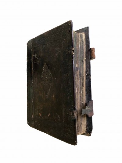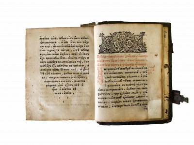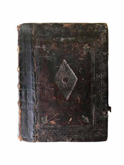 Книга в переплёте эпохи: доски, кожа. Сохранена часть одной застежки. Печать в две краски. Гравированные заставки и буквицы.