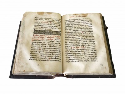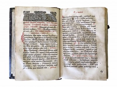 Книга в переплёте эпохи: доски, кожа. Сохранены части застежек. Печать в две краски. Орнаментальные инициалы, заставки, концовки и буквицы.
