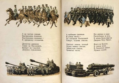 Замечательная детская книжка с яркими иллюстрациями художника А.Ермолаева. Книжка рассказывает о мальчике Пете, который вместе с братом посещает трофейную выставку, сквозь февральскую вьюгу пробивается к школе как настоящий разведчик, пишет письмо товарищу Сталину и, конечно, идет на первомайский парад.