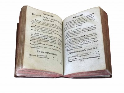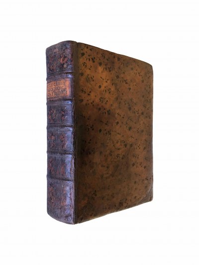 Книга в цельнокожаном переплёте эпохи с тиснением на корешке. Фрагментарные загрязнения страниц.