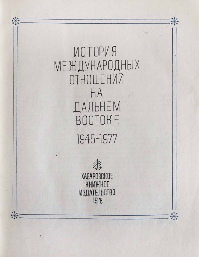 История международных отношений на Дальнем Востоке (1945-1977 гг.)