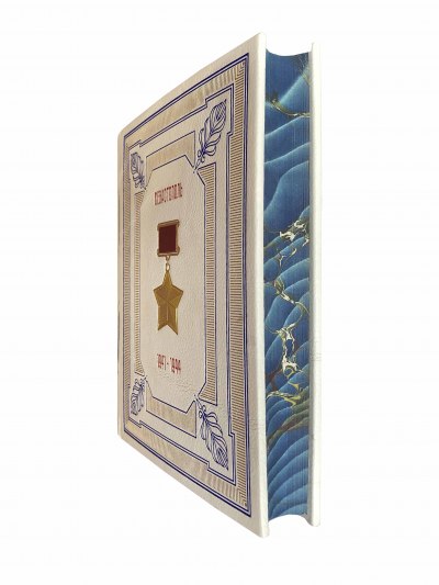 Книга в цельнокожаном переплете ручной работы с тиснением золотом и инкрустацией кожей. Дизайнерские обрезы.